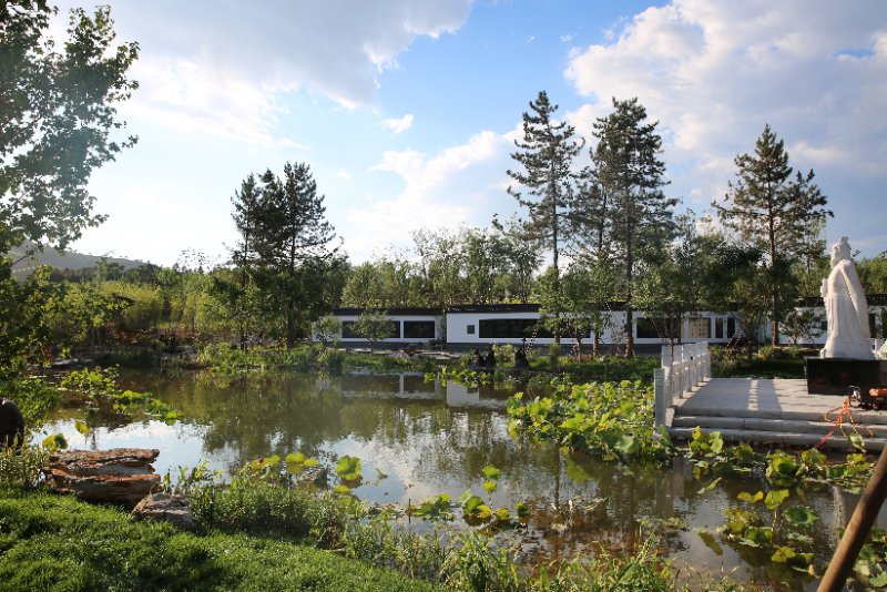 衡水展園位于秦皇島園博園的地市展園區內,四面環水呈島嶼狀,西北側毗鄰邯鄲展園,緊貼東側“雄安印象”濕地景觀區水面,由多條三級道路接入島嶼,衡水溯源至周,成于儒士,得名于褉禮,儒家文化成為衡水重要的城市名片,漢代大儒董仲舒,唐代大儒孔穎達都是衡水人,而當代衡水更是國內著名的儒學研究高地,故衡水園取名“儒鄉園”。 衡水園以古建、山水、疊石成景,用三條文化線索以及求學的不同境界,將展園分為寒門習禮,書院致知,歸田園居三個區域。園內三進院落以古建,山石,松竹為主,融合書山學海的理念,以自然山水園為載體,體現儒家文化主題。 園內古建筑形式汲取冀東南古典民居元素,園林風格元素來源于北方私家庭院形式,在保留古典民居風韻的同時,又增添了衡水獨特的人文氣息。園內池廣樹茂,景色自然,臨水布置了形體不一、高低錯落的建筑,主次分明。園中設有三處濱水控制點,可遠眺湖面,整個園內都可眺望遠處的棲云山,山水園林,以為借景。 首先來到的是寒門習禮區,緣起儒家少年寒窗求學,習藝明禮的典故。是以青竹為背景,展現學子求學場景的區域。包括垂花門主入口、寒門習禮廣場和竹間小徑。 垂花門(主入口楹聯,入口地雕,樂山亭,院墻漏窗) 入口以白色花瓦圍墻及書院木質垂花門為主景,垂花門上書匾額“儒鄉園”,書法遒勁端莊,楹聯內容為:“水繞城池無雙地,道德教化第一區”,上聯指的是衡水獨一無二的水文地理特征,下聯更是將衡水做為國內知名的儒學研究高地的特質體現的淋漓盡致。素墻灰瓦垂花門為入口建筑,過橋即入,景觀醒目,以風骨青竹為基底,點以假山置石,配合地形構筑,形成曲折有趣的體驗空間。區域主體建筑在東側,西側以地形山體強調園區邊界,其上種植竹林,有石板小道穿行其間。道路末尾設亭一座,名曰:“樂山亭”,取儒家“智者樂水,仁者樂山”之意,可遠眺外湖水面,豁然開朗。衡水基礎教育全國聞名,園內楹聯更是奇文妙墨,微言大義,可以常讀常新,給人以“溫故而知新”的意外之喜。 寒門儒訓(入口太湖石花臺) 入垂花門后,山石花臺映入眼中,花臺取庭院中苔痕階綠,絲竹有聲之故,正對主入口建筑,形成入口對景,也是整個園區景觀序列的開始。其中點景太湖石高大奇偉,嵌空瘦挺,孤高磊落,具備了古人對太湖石的八字審美標準,即“瘦、皺、漏、透、清、丑、頑、拙”。 由于太湖石質地堅硬和外表不易發生變化的特質而被賦予了忠貞不喻的人格特征,自古為人們所崇拜。太湖石陽剛的石質與陰柔的外形和諧于一體,正是中國傳統文人所追求的“外圓內方”處世之道的生動典型。所以,自古從孔夫子“仁者樂山”開始,文人們愛石、友石、賞石,就是要通過與石的情感交流來表現自己堅貞和高潔的品德。 入垂花門后左手邊院墻 進入垂花門后左轉,為漏窗景墻。景墻上的五處景窗繪制隨形圖案,上書儒家五字格言“仁義禮智信”。園中內外景觀由景窗相互滲透借景。其名為“靜室窺園”,取自董仲舒三年寒窗求學不窺庭園的典故,以素墻、透窗形成儒家五德文化的展示空間。 禮正儒容廳 沿圍墻進入下沉式院落內,有一正廳,名為“禮正儒容廳”,禮正儒容取儒禮中正容和之意,廳門口楹聯一對,曰:“世事禮讓三分闊,心田多留一點遠”上聯的“世事”是指社會交往中的人情世故。古人有言:“海納百川,有容乃大”,“處事讓一步為高,待人寬一分是福”。意在告誡人們遇事禮讓三分,這樣就會游刃有余顯得天寬地闊。下聯的“心田”,系佛教語,即內心世界。意在教育子孫后代做人要胸懷寬廣,心存善德。建筑為樸素的三開間硬山頂,廳內設屏風,繪制有衡水著名漢代大儒董仲舒講學圖。建筑前廣場上放置黑色石板,石板雕刻有衡水法帖字帖內容,意在體會書院求學的趣味。 六藝魚缸 過禮正儒容右行,穿行在溪流半島之間。點綴有六個外繪儒家六藝內容的造型魚缸,表面六藝圖案由衡水當地畫師手工繪制,繪畫主題為儒家六藝(禮、樂、射、御、書、數)。尋找魚缸的過程,如同在求學探索六藝的過程。魚缸中養殖衡水三絕中的宮廷金魚。該區域點綴山石、配置松、竹、是一處幽靜景觀展示區域,以植物文化體現文人氣節。在竹影婆娑之間,人物雕塑“祓禊 (讀fu二聲xi四聲)”映在其中,所謂祓,是指撥除病氣,使之清潔,禊是指清潔身體,兩漢時期極為隆重的活動。雕塑中兩個少女手拿柳枝,姿態婀娜,正在為游人舉行一場拔出不祥、祈求致福的儀式。 禊手榭 過學海尋藝園,到達外湖水邊石灘,石灘上設水榭一座。其內中置一靜水石臺,其上銘刻衡濱褉禮圖樣。衡濱禊禮緣起橫漳之濱的盛大禊禮——“莫春者,春服既成,冠者五六人,童子六七人,浴乎沂,風乎舞雩,詠而歸。”也是衡水市得名起源。其有楹聯為:“竹雨松風悟琴韻,清風明月聽書聲。”慢慢品味,似乎有皓月當空、清風徐徐和遠望群山、近看流水聽琴的閑適之意,瀟瀟竹雨,陣陣松風,在這樣的環境中調琴煮茗,讀書賞月,的確是歷代文人所追求的無邊風光之雅事。 知水亭 由水榭向西,沿內湖岸邊進入知水亭中。亭名因水而得,又應儒家知水樂山之意。該亭位于堤上,兩側觀水。湖內蓮花亭亭凈植,湖岸柳枝絲絲婆娑,亭單檐四角,四面通透,亭中有抱柱聯:“知天地莫如知己,水聲色難抵水云。”借對大自然的體悟和熱愛,表達生命的活力,頗有“萬物靜觀